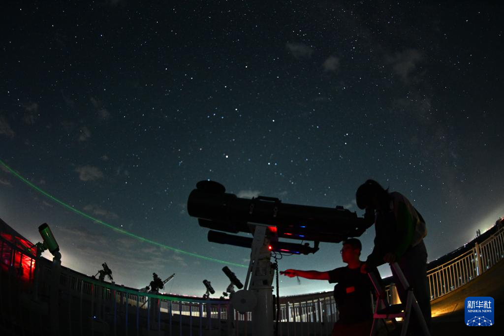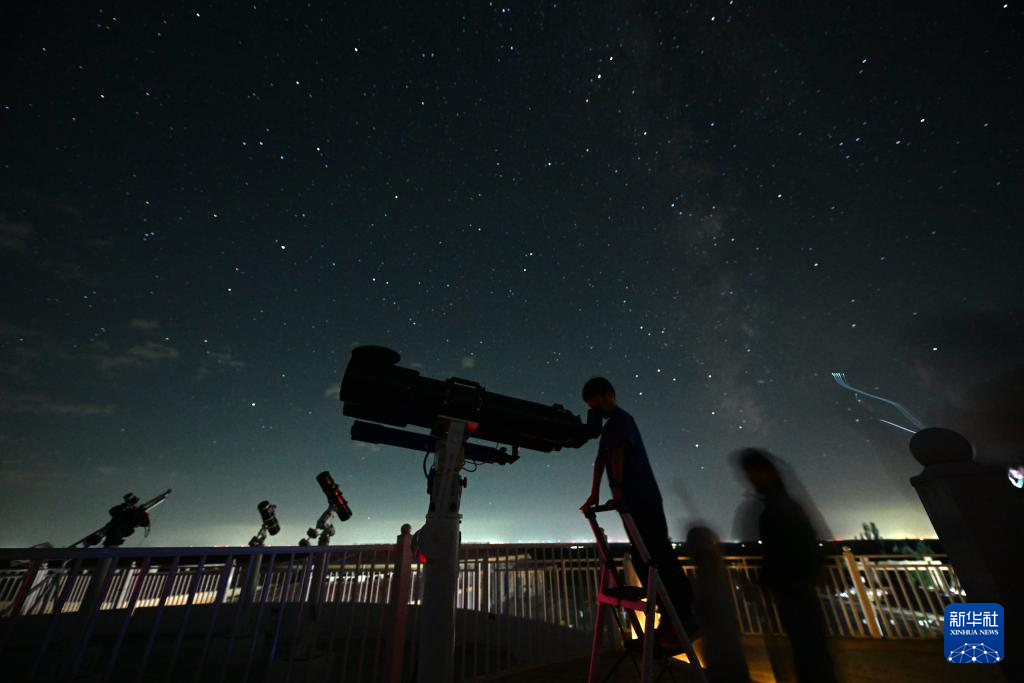 近日,英仙座流星雨光顾北半球。地处我国西北的宁夏吴忠市盐池县哈巴湖国家级自然保护区,远离城市,观星条件优越。恰逢暑期,哈巴湖天文台组织开展英仙座流星雨观测、讲座等活动,吸引众多天文爱好者、青少年前来体验星空魅力、了解星空知识。新华社记者 王鹏 摄pagebreak