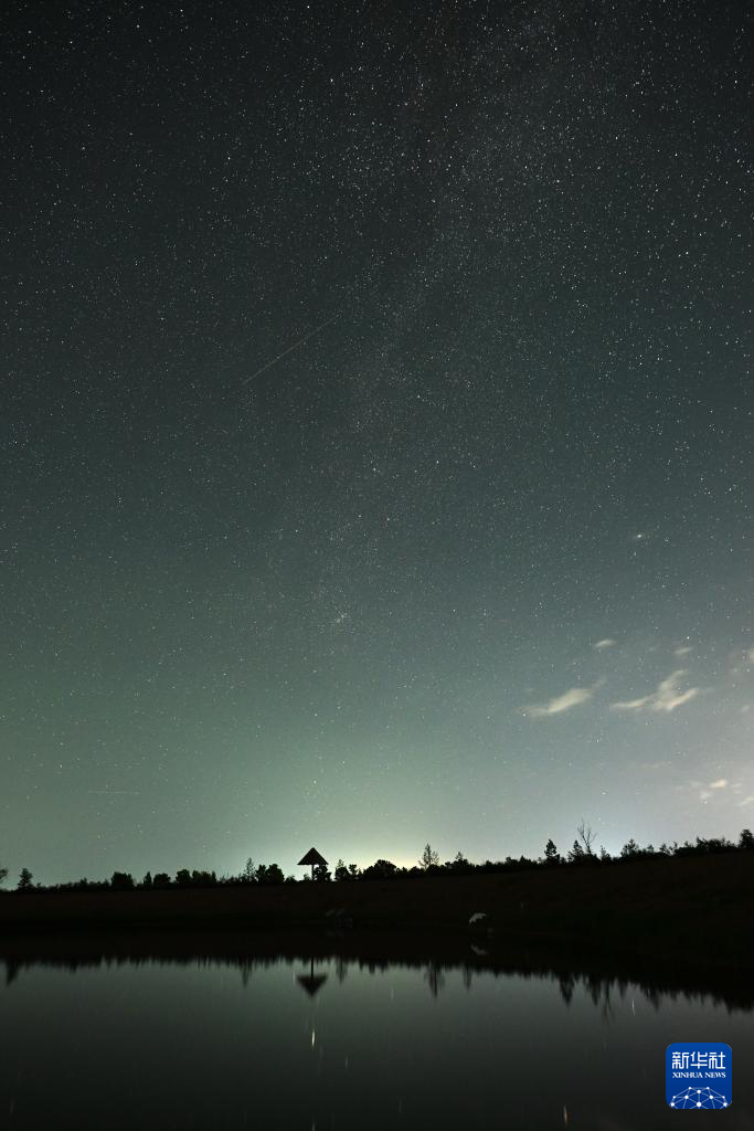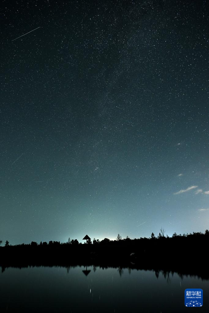 这是在哈巴湖国家级自然保护区拍摄的英仙座流星雨(8月12日摄)。