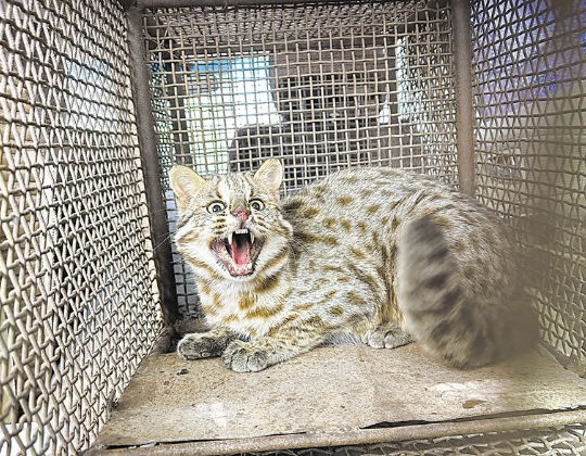 11月8日,宁夏贺兰山国家级自然保护区红果子站、自治区公安厅森林公安局贺兰山分局、石嘴山市惠农区自然资源局、惠农区滨河派出所联合救助了一只窃食农户鸡的野生豹猫,这是贺兰山地区首次捕获到活体豹猫。
