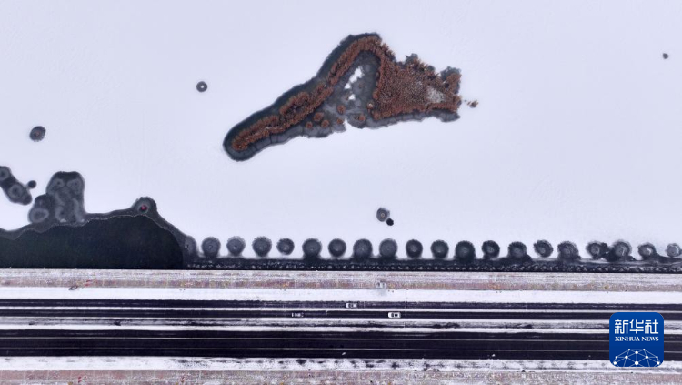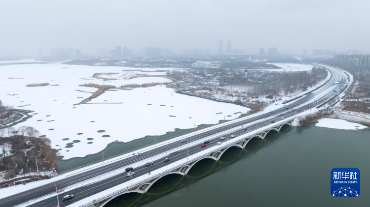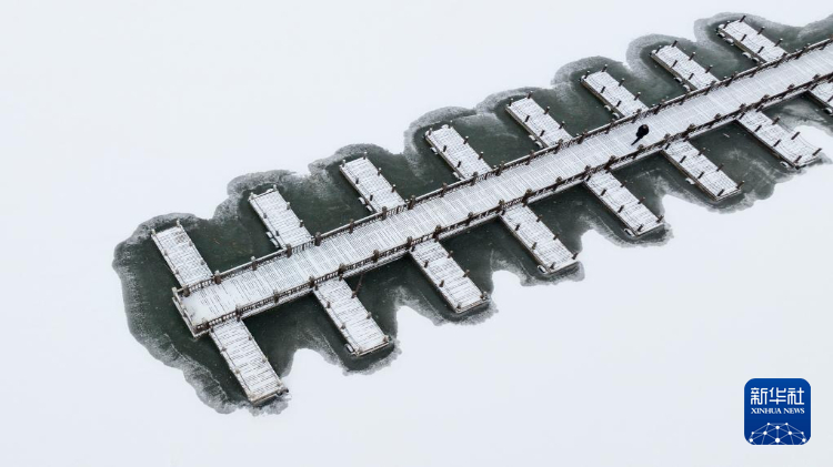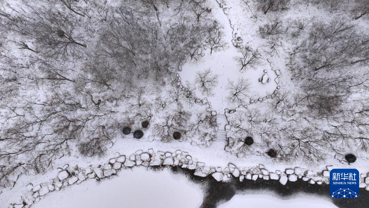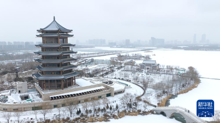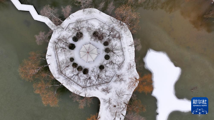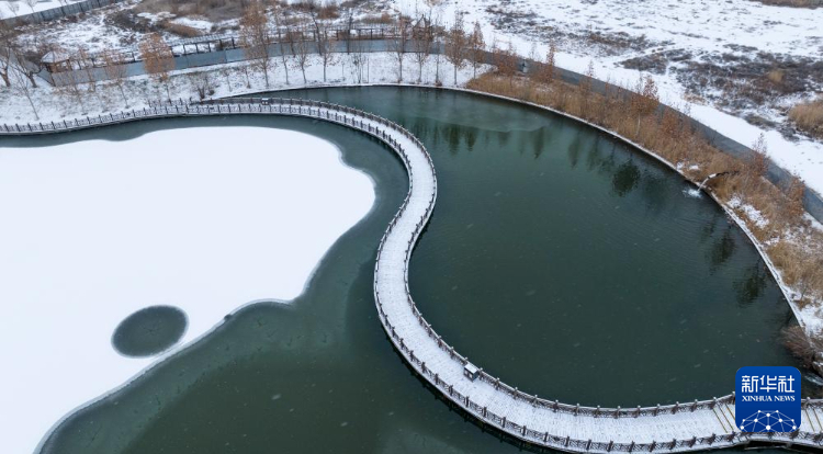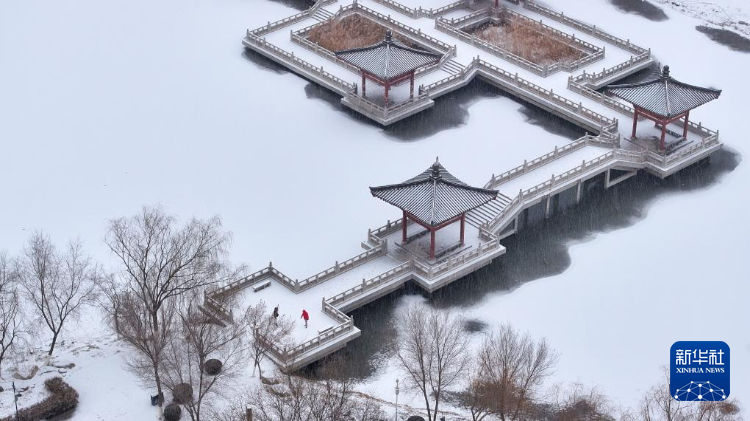 这是12月14日拍摄的银川市阅海公园雪景(无人机照片)。