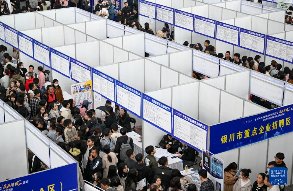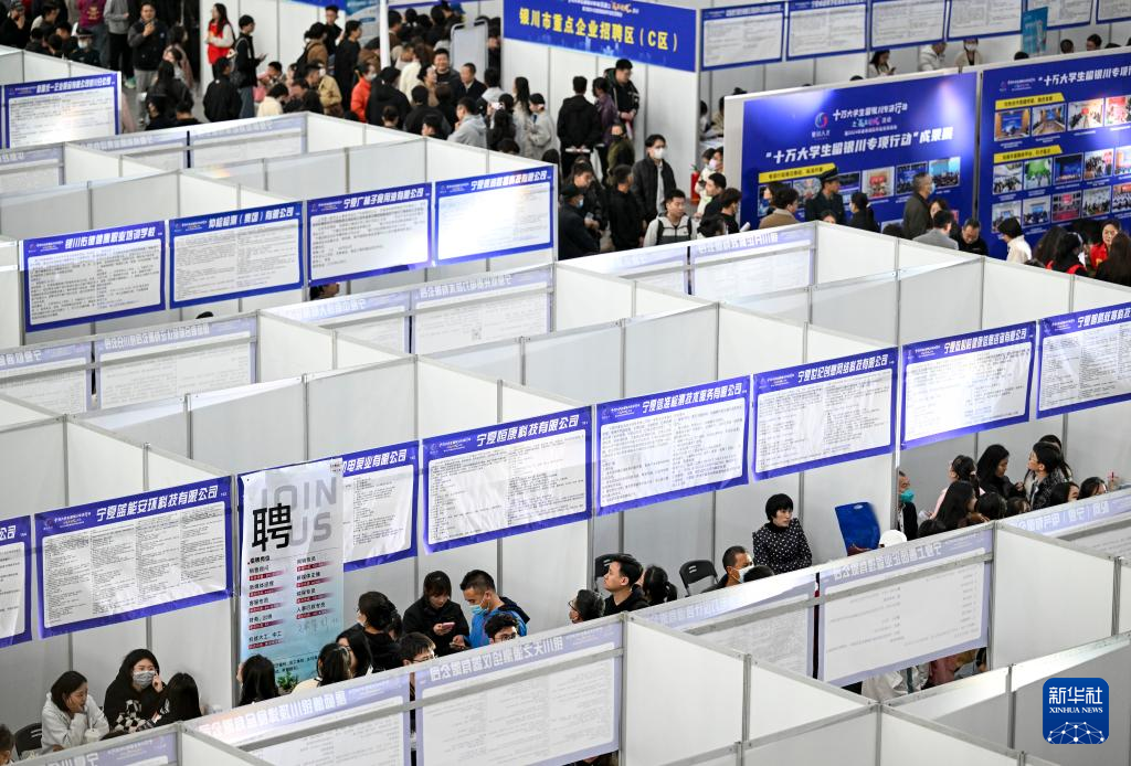 当日,宁夏银川市举行“十万大学生留银川专项活动”暨2024年春季高校毕业生双选会。招聘会现场,近300家企事业单位提供15000余个岗位,吸引众多高校毕业生和社会求职者参与。新华社记者 冯开华 摄