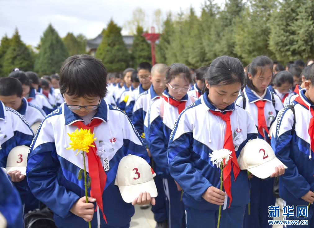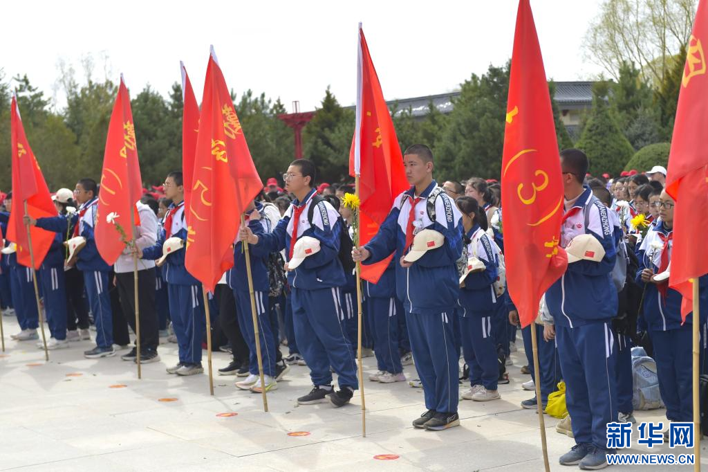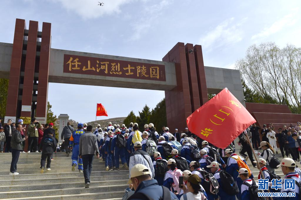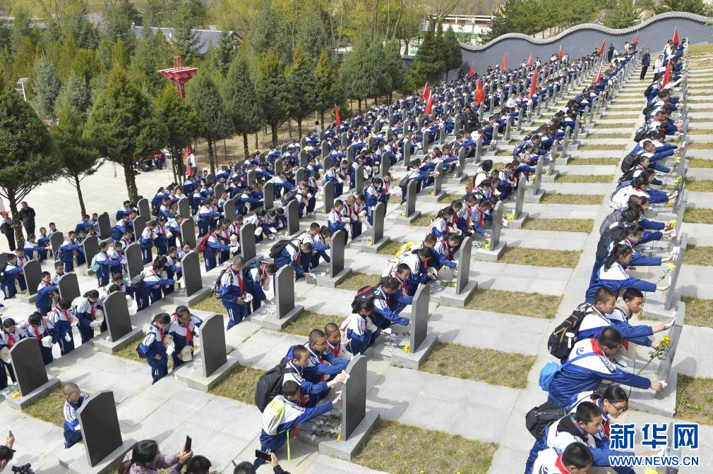 新华网银川4月6日电(记者 毛竹)4月3日,宁夏固原市弘文中学和固原二中2000余名师生徒步前往固原市彭阳县任山河烈士陵园扫墓。