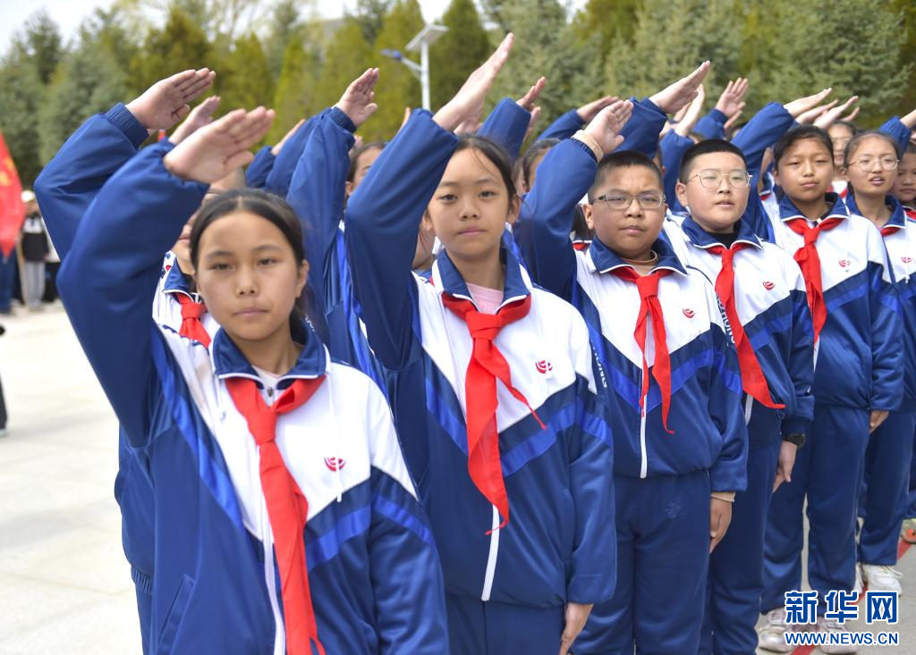 4月3日,学生们在宁夏固原市任山河烈士陵园向革命先烈敬礼。新华社记者 毛竹 摄