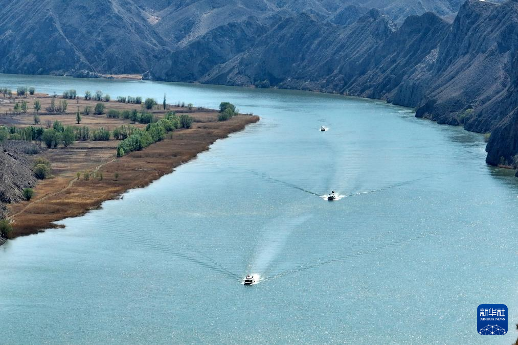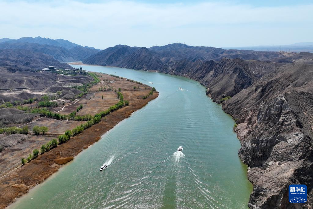 四月的青铜峡黄河大峡谷春意盎然,吸引游客到此游览黄河春景,感受黄河魅力。新华社发(袁宏彦摄)