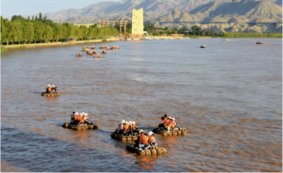 游客坐在羊皮筏子上,听着筏工的醇厚民谣,随着波涛的起伏,颠簸而行,有惊无险,极富刺激。
