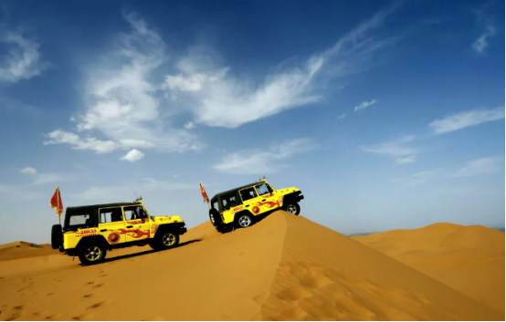 自驾越野车在沙漠中驰骋,感受速度与激情的完美结合,参与沙漠飞天项目,随着观光舱的上升,感受“坐地日行八万里,巡天遥看一千河”的豪迈。