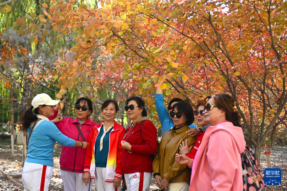 10月22日,人们在银川市凤凰公园游览。