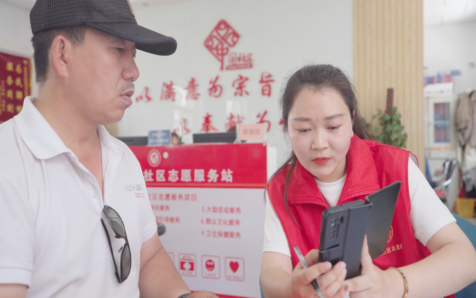 灵武市西湖社区网格员为前来办事的居民服务