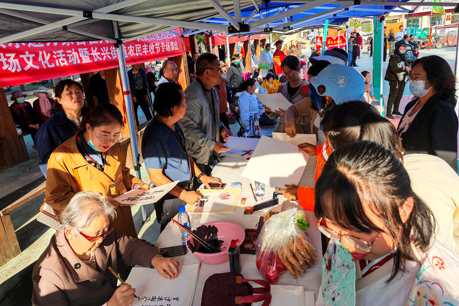 活动设置的便民服务区同样人气十足,义诊、义剪、政策咨询等10余个服务点位前排起长队。社区卫生院的医护人员组成义诊团队,为居民提供血压测量、健康咨询等专业服务;志愿者开展的义剪、按摩等“小微”服务精准对接民生需求;非遗手工布艺、古法制香、掐丝珐琅、民间剪纸、漆扇制作以及书法笔会现场,参与者络绎不绝,让群众零距离感受传统文化魅力;由街道司法所、长城派出所等部门联合设置的政策咨询台化身“移动课堂”,工作人员用通俗易懂的语言,面对面为群众解答涉农补贴、法律援助、反诈骗、消防安全、国防教育等热点问题,有效提升了居民的政策知晓率和安全防范意识。