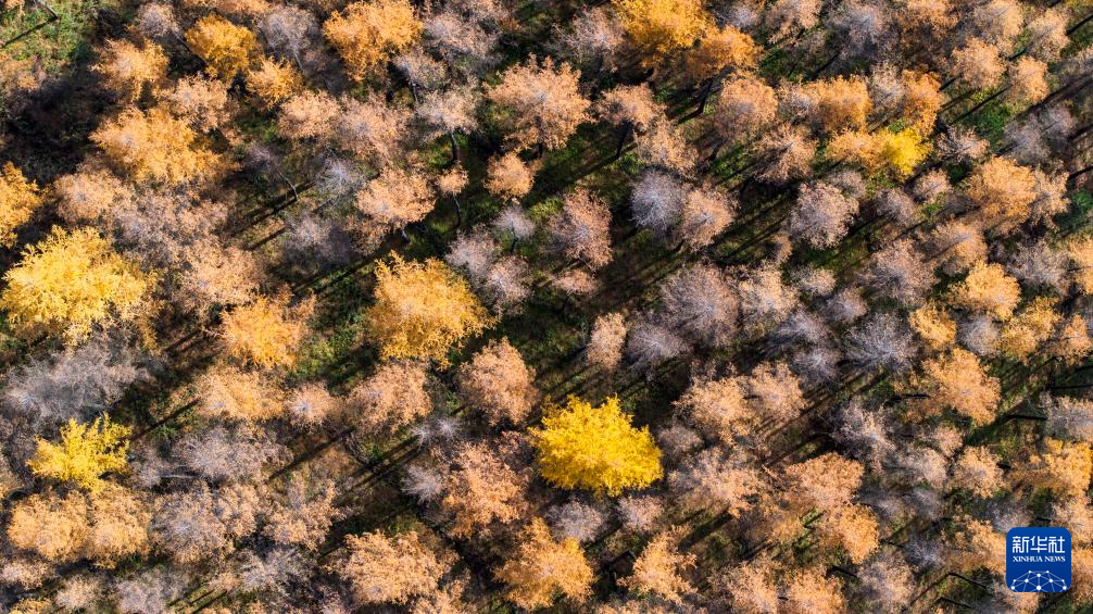 10月27日在宁夏固原市隆德县六盘山北联池拍摄的秋景(无人机照片)。