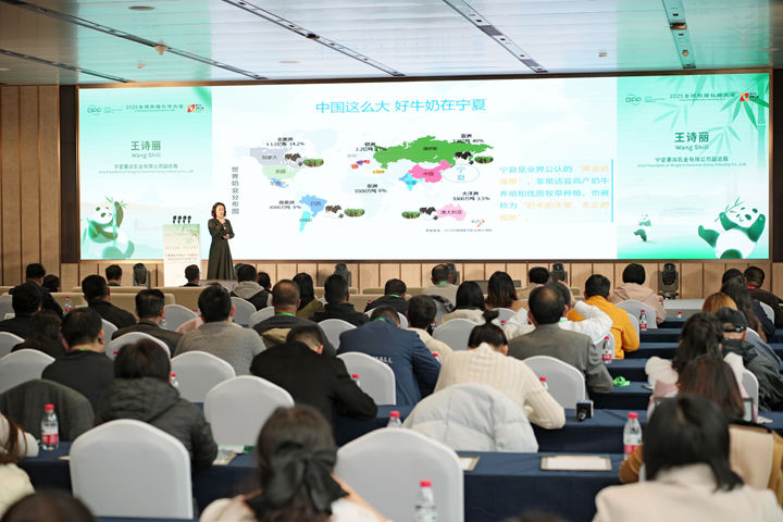 “中国这么大,好牛奶在宁夏。”王诗丽在发言中介绍,宁夏地处北纬38°黄金奶源带,得天独厚的自然条件孕育了优质奶源。2024年,全区奶牛存栏达88.5万头,生鲜乳总产量457万吨,生鲜乳抽检合格率更是连续十五年保持100%,多项指标达到欧盟标准,被誉为全国奶业优质安全发展的旗帜。