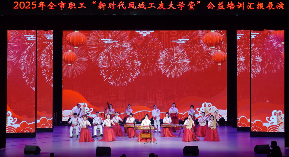 11月22日,2025年银川市职工“新时代凤城工友大学堂”公益培训汇报展演在银川市工人文化宫职工剧场举行。参演职工以文化为翼,以学习为桥,绘就了一幅文化赋能职工、成果点亮凤城的生动画卷。