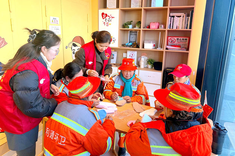 为丰富服务内涵,各驿站常态化开展暖心活动。“这手套不仅暖和,更暖在心里,让我们真切地感受到了工会‘娘家人’的牵挂。”前不久,在金星镇万达商圈的工会驿站,工会组织开展了“暖心手套DIY”活动。