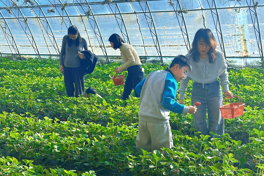 “我主要种植了奶油草莓和巧克力草莓两个热门品种,前者果肉细腻如奶油,后者清脆香甜,满足各种喜好的消费者。4个棚的草莓亩产预计可达8000斤,目前采摘价格每斤60元。”郑悦说,他通过承包村里闲置土地发展草莓种植,盘活了资源,还带动当地村民就业,这种“承包+就业”的模式,让小草莓成为冬日里的“甜蜜引擎”。(张梦)