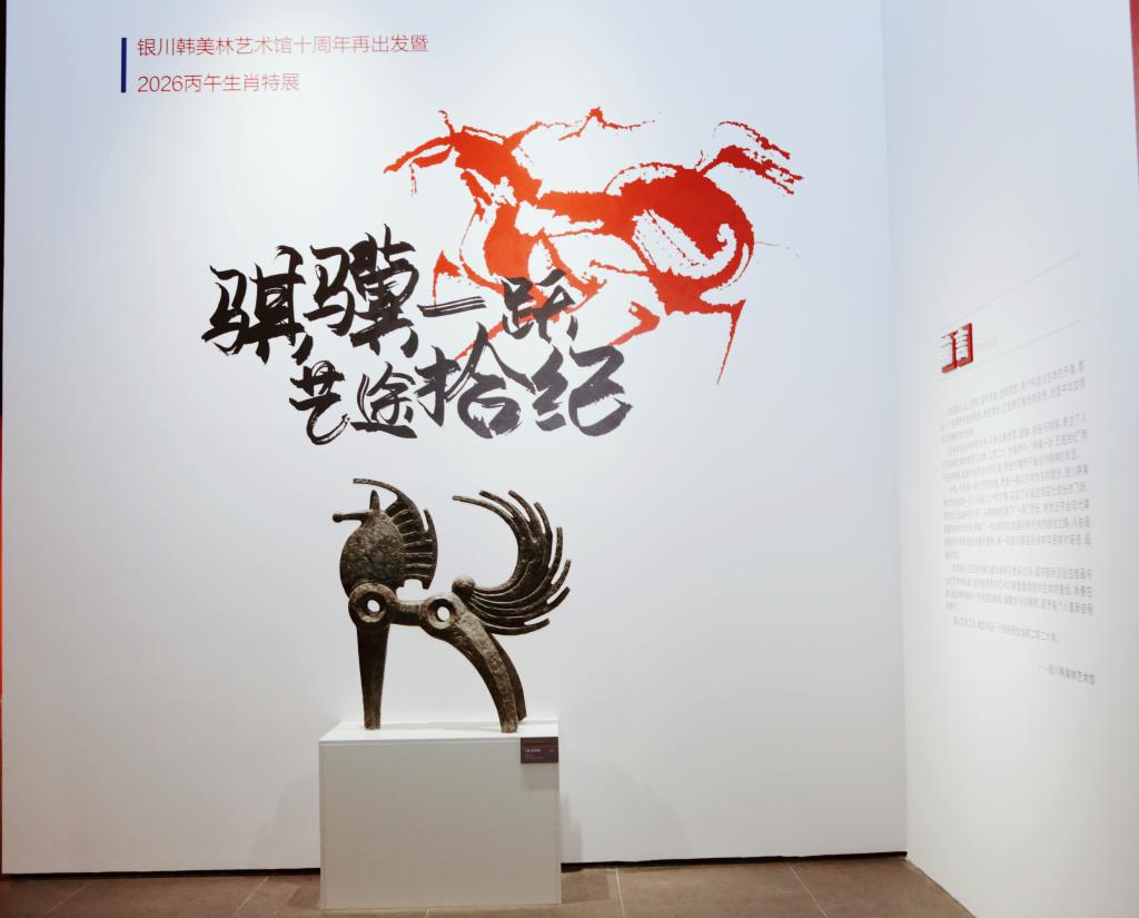 新华网银川12月21日电(记者马思嘉)21日,“骐骥一跃 艺途拾纪”银川韩美林艺术馆十周年再出发暨2026丙午生肖特展,在宁夏贺兰山下的银川韩美林艺术馆开幕。