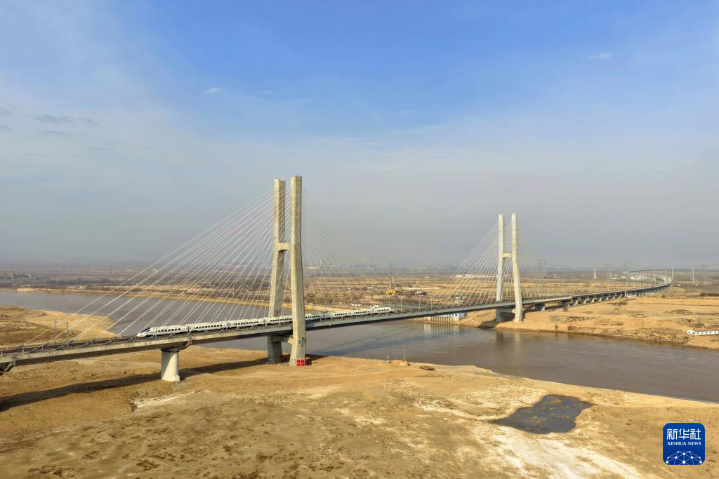 包银高铁起自包头站,经内蒙古自治区包头市、巴彦淖尔市、鄂尔多斯市、乌海市,宁夏回族自治区石嘴山市、银川市,接入银川站,正线全长519公里,设计时速250公里,实行分段建设,其中,惠农至银川段全长97公里,已于2024年10月开通运营,此次开通的包头至惠农段全长422公里。新华社记者 邢广利 摄