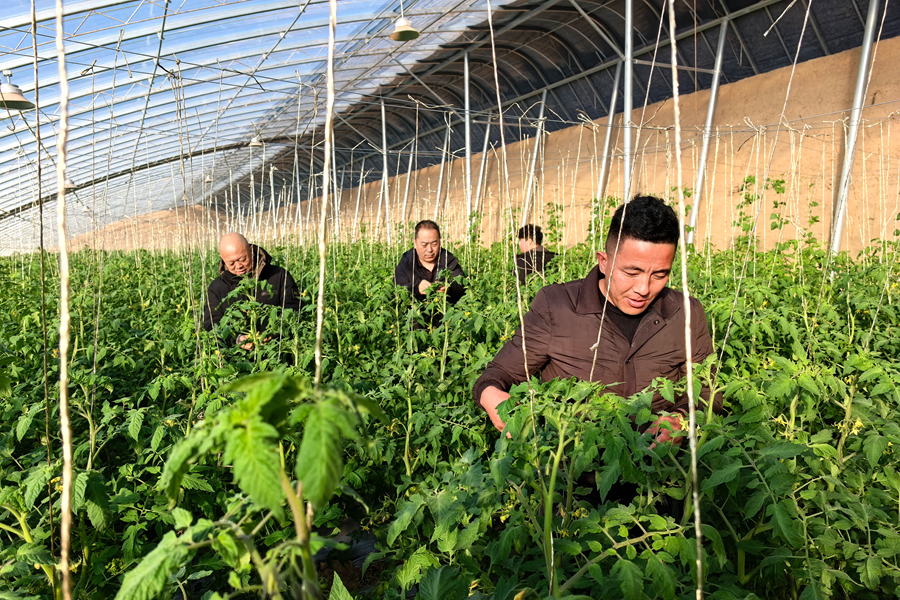 隆冬时节,宁夏吴忠市利通区扁担沟镇同利村的标准化大棚内暖意融融、生机盎然。一畦畦西红柿、辣椒青翠茁壮,村民们正娴熟地进行落蔓、掐芽、绑枝等田间作业,精心呵护这批反季栽培的增收希望。