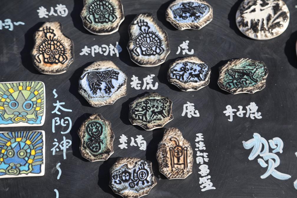开幕式现场互动体验市集人气旺盛。冰系列研学、徽章DIY、马年冰箱贴等亲子活动吸引众多游客参与,非遗传承人现场展示贺兰石篆刻技艺。冰雪景观成为亮点,冰封玫瑰、岩画元素雪雕、百米雪圈滑道等吸引游客驻足拍照,有游客感叹岩画与冰雪结合“仿佛穿越到冰河时代”。