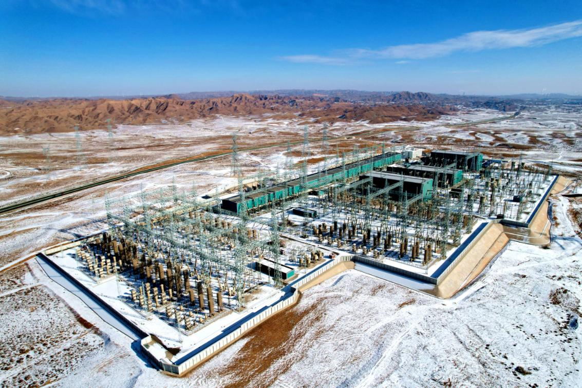 1月7日,位于宁夏中卫市中宁县的±800千伏中宁换流站正在源源不断地输送绿色能源。(周序鹏 摄)