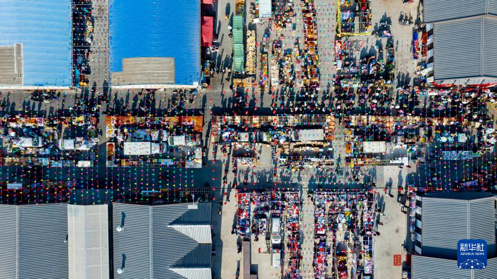 金贵大集成立于1957年,占地近50亩,集服装百货、蔬菜水果、鲜肉日杂、家畜副食等为一体,现有各类商户400多户,是周边20多个村庄百姓购置生产生活物资、销售农产品的主要集散地。经过近70年的发展壮大,金贵大集现已成为远近闻名的“网红大集”。近年来,通过加强环境治理和基础设施升级,金贵大集不断“焕新”,成为当地热门打卡地点。新华社记者 杨植森 摄