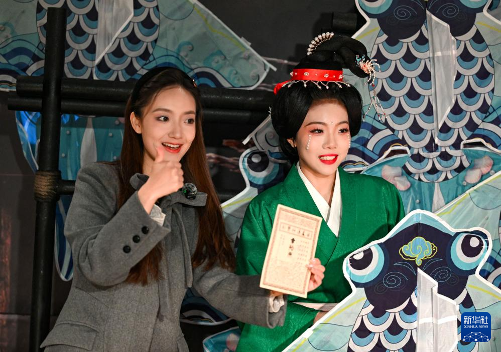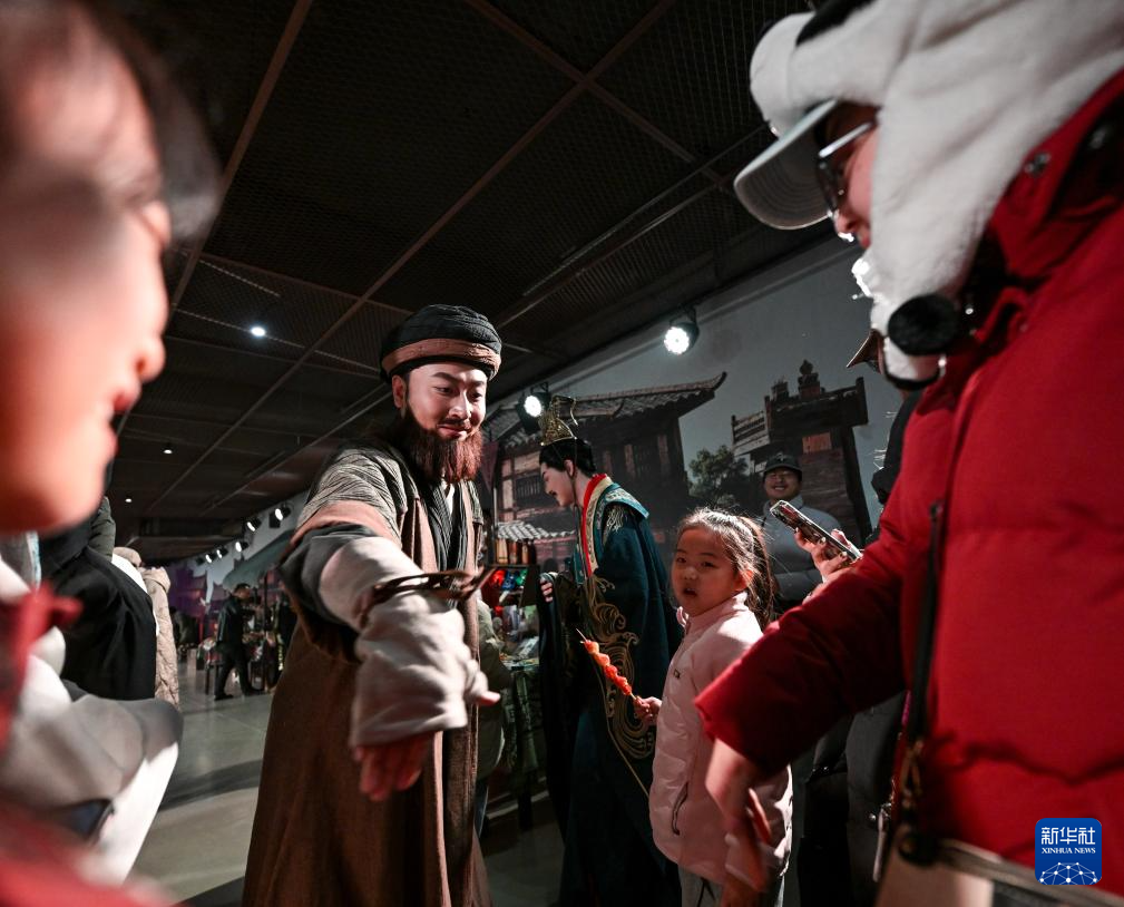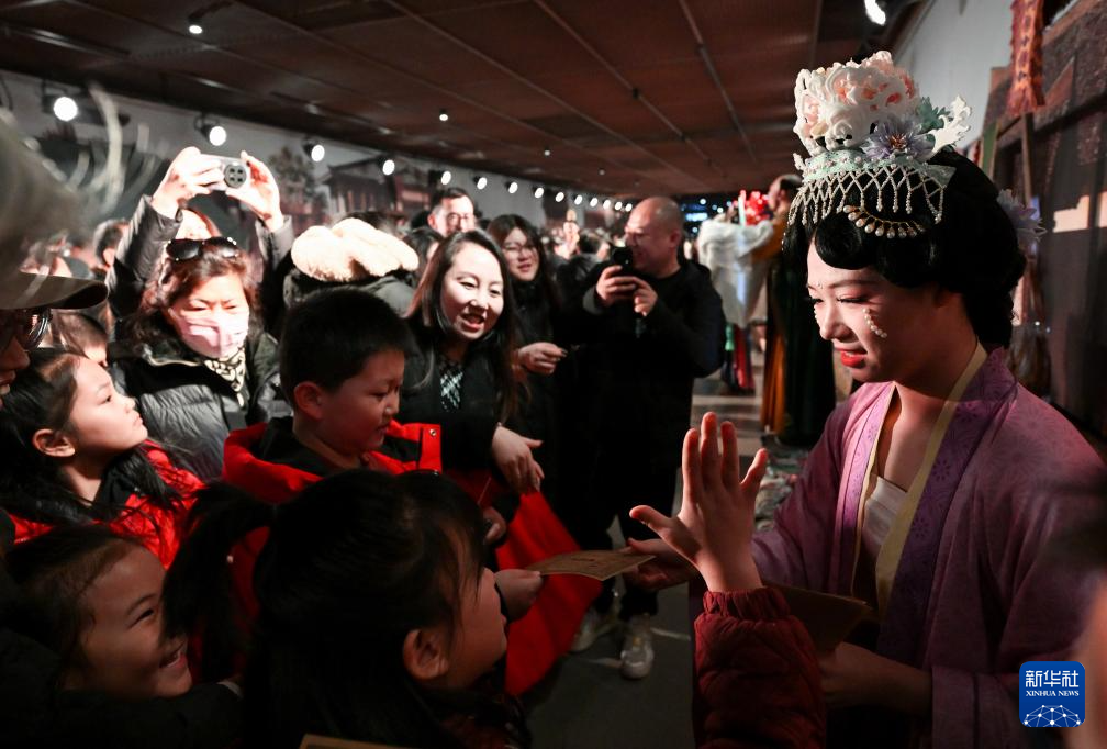 2月13日,游客在银川市西夏陵景区与演员互动。