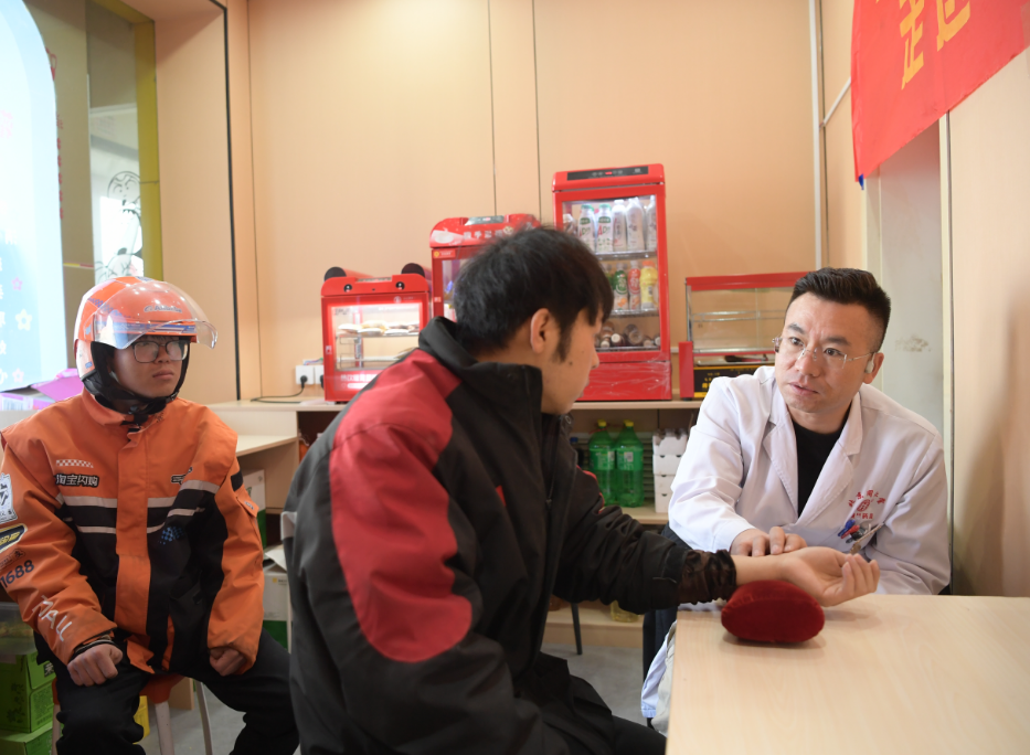 生日会现场,常年穿梭在城市街巷、忙于派送的“奔跑者”们放下了工作的疲惫,围坐在一起,脸上满是喜悦。伴随着欢快的生日歌,大家一同点燃生日蜡烛,寿星们携手切下象征团圆与温暖的生日蛋糕,甜美的奶油承载着满满的祝福。社区食堂贴心烹制的长寿面寓意着平安顺遂、健康长久。活动现场还同步联动服务联盟单位开展公益义诊服务,专业医护人员为一线新业态从业者提供健康咨询、基础体检等贴心服务,细致解答大家日常奔波中遇到的健康疑问,用专业服务为他们的身体健康保驾护航。