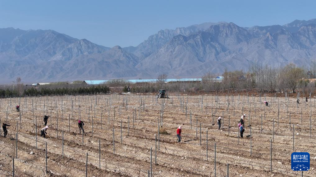 随着气温回暖,在宁夏贺兰山东麓的优质酿酒葡萄产区,数十万亩酿酒葡萄结束“冬眠”,迎来春季展藤。冬藏埋土、春季展藤,是我国北方一些葡萄产区独特的农耕措施,以避免冬季低温冻伤葡萄藤。宁夏贺兰山东麓位于北纬37度至39度,是我国最大的酿酒葡萄集中连片种植区和酒庄酒产区。新华社记者 王鹏 摄